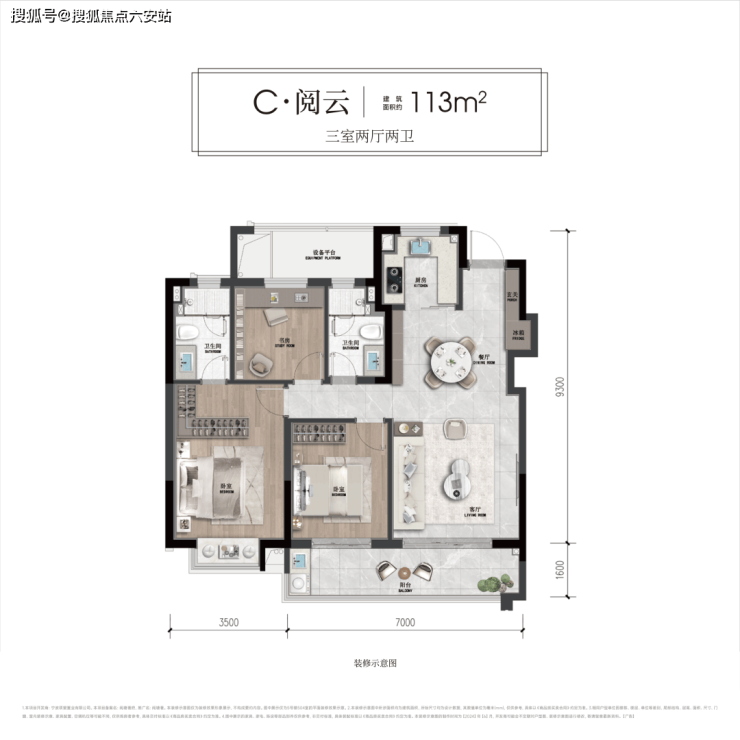 建筑面积约113m²全维户型:LDKB一体化共享式聚厅消弭空间隔阂,增进家人互动;约7米双联大阳台集观景、休闲、实用于一体;主卧套房搭配步入式衣帽间,附加N+1灵动空间,满足“二人世界—三口之家—三代同堂”全生命周期成长。