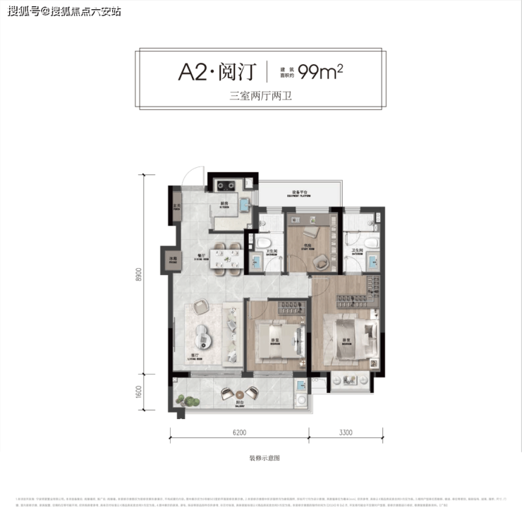 建筑面积约99m²神户型:南向三开间引光入室,U型厨房高效分区,双联阳台延伸生活情趣;套房式主卧预留衣帽间,小空间实现“卧室+收纳+私密”全维功能,堪称“刚需天花板”。