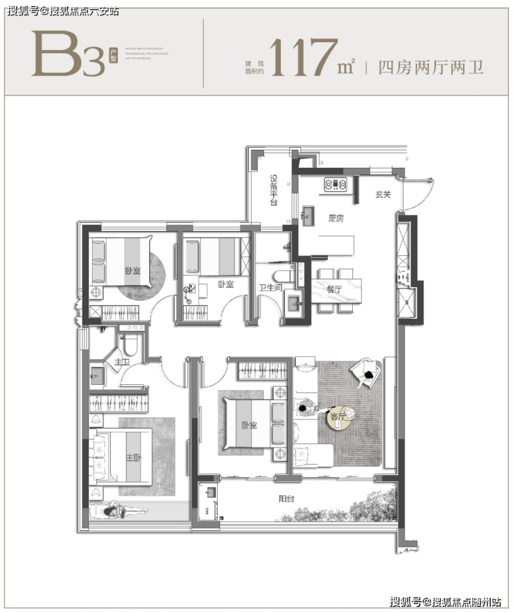 与此同时,二胎家庭或三代同堂的改善需求,在约 117㎡全能四房里也能得到完美回应。科学的动静分区, 将餐客厅的欢聚喧闹与卧室、书房的静谧休憩清晰划分,让长辈安享静眠、孩子专注学习、主人放松身心,每代人都有专属舒适区。