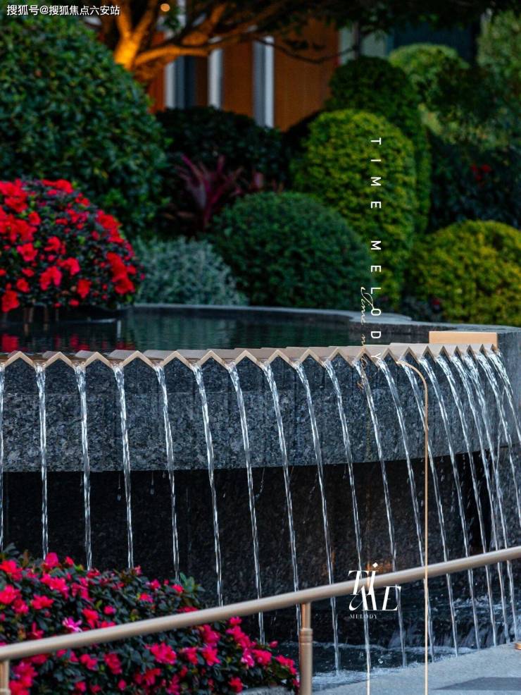 入口处的迎宾水景是园林的点睛之笔,池底设计为盛放的牡丹图案,周边种植着从远方移植而来的加那利海枣树,瞬间提升了园区的度假感。园林内还设置了环形小道、全龄活动空间、口袋花园和阳光草坪等功能区,满足不同年龄段业主的休闲需求。叠水堆坡的设计创造出错落的层次感,移步异景的体验让每次归家都成为一场心灵之旅。