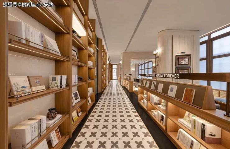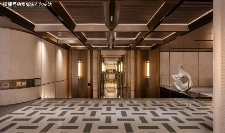 比如首开的1号楼,架空层就像一座陈列着书籍的美学空间,雪山兰等奢石铺陈,搭配主题logo拼花石材、叠级吊顶等设计,尽显高阶的温润感。