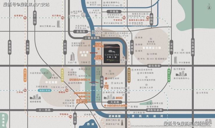 位于拱墅区运河新城商务核心区,毗邻京杭大运河博物院(赫尔佐格&德梅隆设计)、小河公园(隈研吾作品)等国际级文化地标,同时紧邻地铁4号线、10号线(规划),15分钟直达武林广场,水陆交通立体便捷。