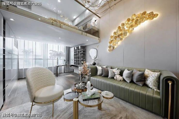 平层的层高约3.3米,自带夹层空间。可以布置成休息区,再搭配精致的小酒柜,设计感满满。