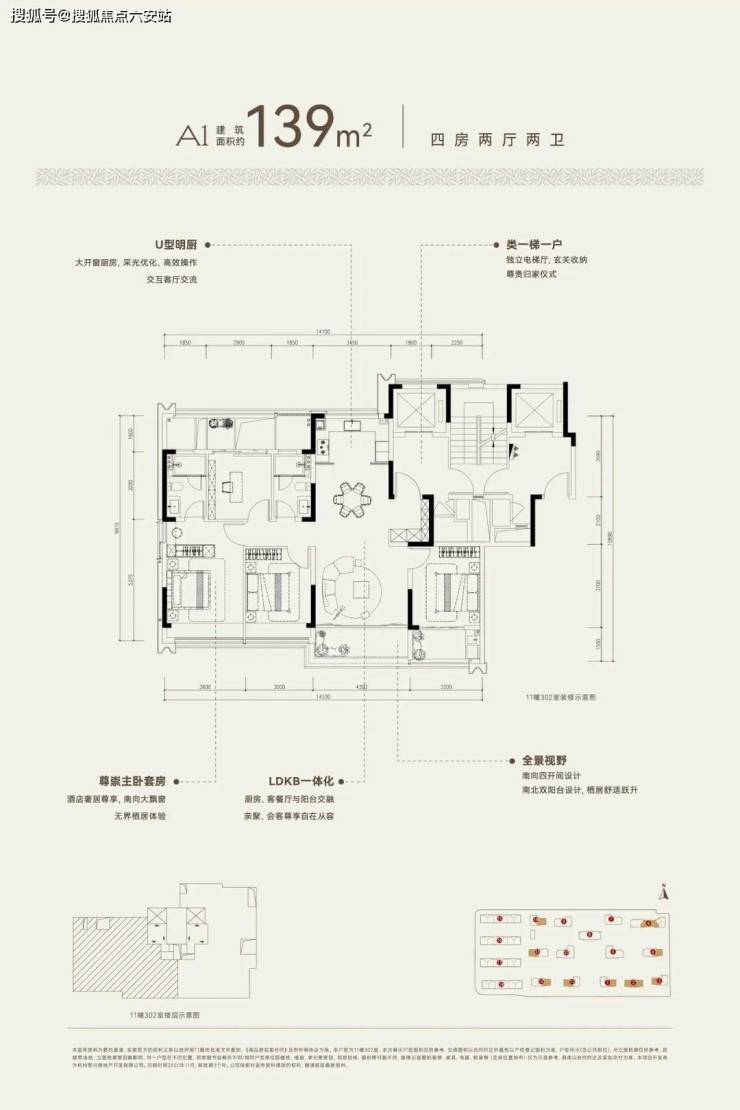 尤其值得称道的是建面约139㎡户型,即便在2梯2户并配置架空层的条件下,依然实现了较高的得房率,展现出设计团队对空间效率的精准把控。