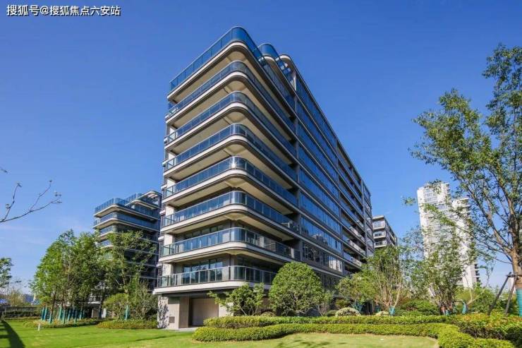 游艇式洋房立面:国际游艇形制设计,搭配顶部退台、曲面栏杆,与县江天际线呼应,革新城市视觉高度。