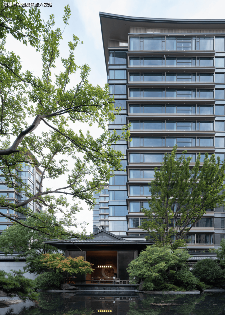 建筑风格:采用新中式风格,外立面为全景大落地玻璃幕墙、铝板、石材组合,既有中式韵味又具现代感。