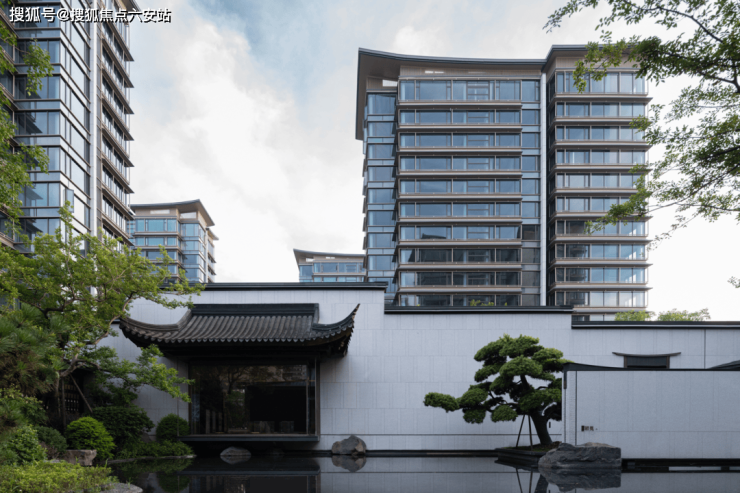 新中式立面典范杭州·建发·缦云,项目位于杭州老城区,邻京杭大运河。设计通过楼栋错动的方式,在场地内围合出多个公共花园。