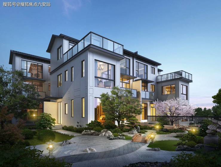 其四,新中式美学建筑,外立面采用白墙黛瓦搭配深咖木纹铝板,檐口挑高至7.2米,退台式园林设计实现户户有景,传承江南传统建筑风格,彰显东方美学魅力。
