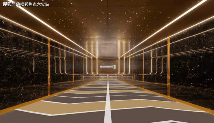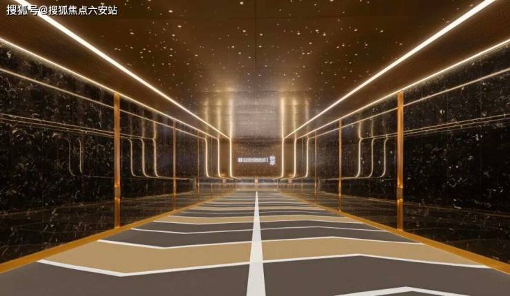 地下室公区同样出自大师设计,下车坡道星空顶加流线型灯带,玫瑰金属包边,两侧的墙面同样采用进口奢石,质感非凡。