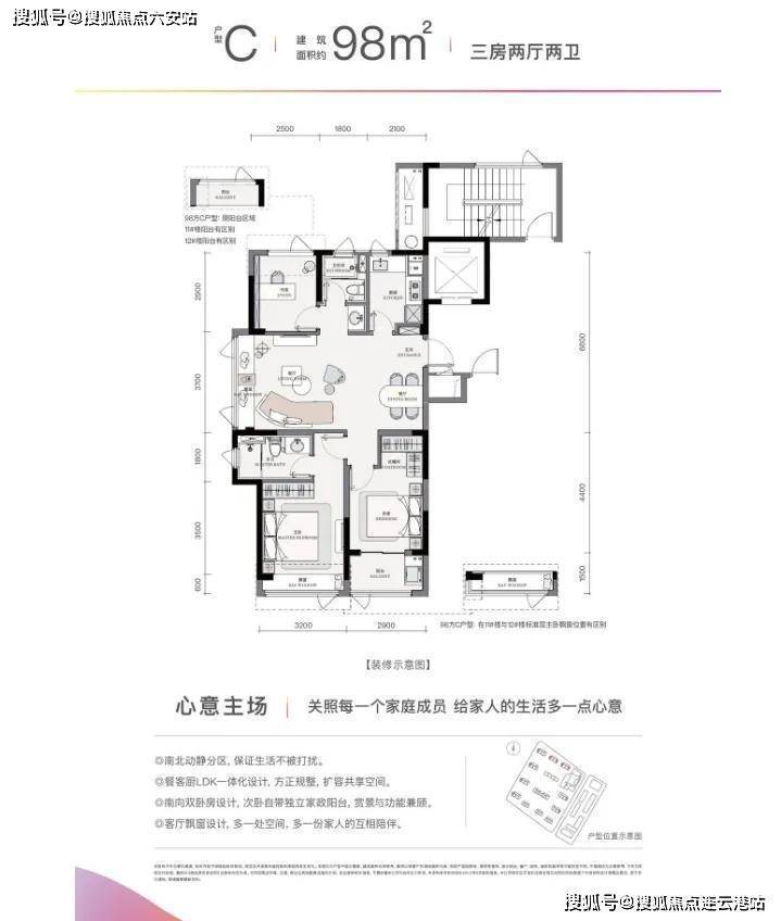 89-114㎡:3室2厅2卫(89㎡/98㎡/114㎡),总价112-172万/套