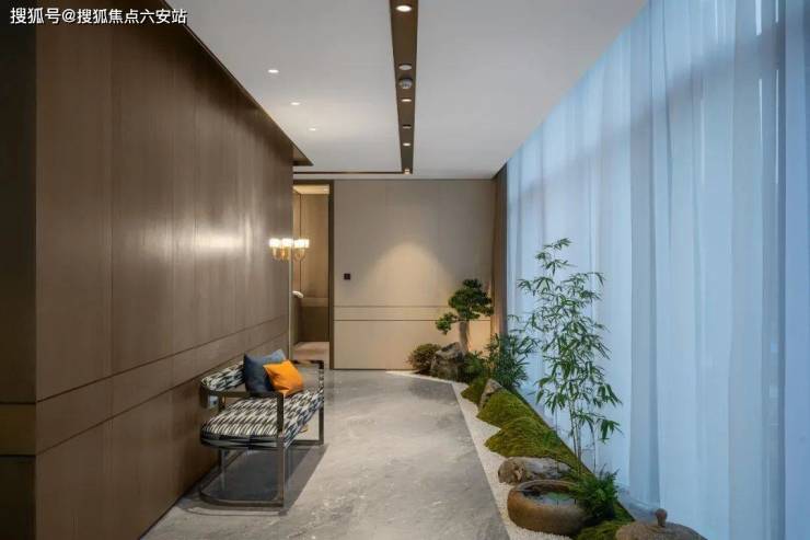 去繁就简,通过大面积落地窗,结合空中花园式的禅意景观,营造自然、灵动、大气、通透的空间尺度,揽江景入怀,为室内增添独特的设计符号。以山间志趣为意向,创造性地融入室内景观的新理念,营造峰回路转的感受、似曾相识的隐逸空间。