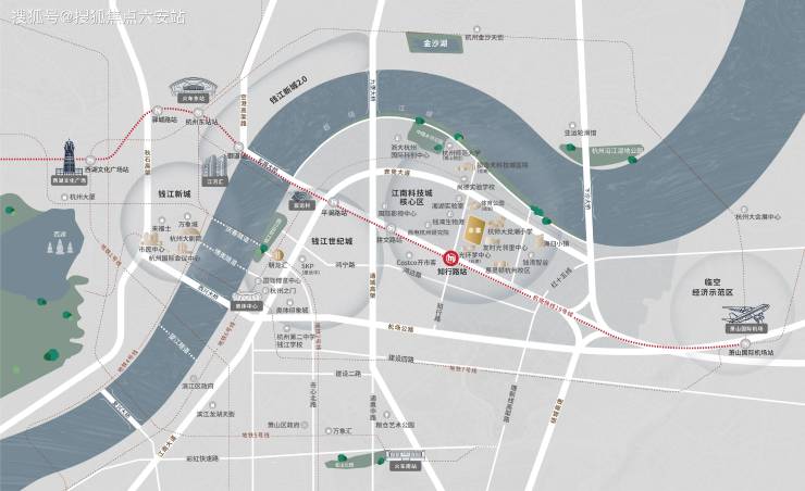 交通网络:坐拥“空港+轨道+高速”三位一体交通网络。地铁19号线知行路站直线距离仅800米,2站直达亚运村,4站到杭州东站,7站抵武林中心。通过奔竞大道、机场高速等城市干道,约15分钟可达萧山国际机场,30分钟覆盖钱江新城。