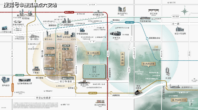 一核双轨:12号线水乡南站(在建,预计2026年底投入使用)(直距约40米);3号线全丰路站(直距约1KM),12站到黄龙体育中心;地铁五站达杭州西站,以西站为核心构成了杭州长三角一小时交通圈的雄心