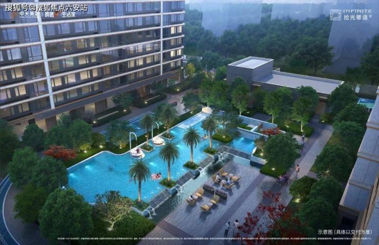 深谙当代年轻人的生活追求,拾光翠语以“一轴四境十二景”为核心,将二进式迎宾水院、森系会客花园、光影艺术展廊、约400㎡复合景观戏水池等依次铺陈,为业主营造出轻奢度假风的森系空间。平时或与亲友聊天赏景,或闲躺斜椅,观湛蓝微波,满是悠然意味。
