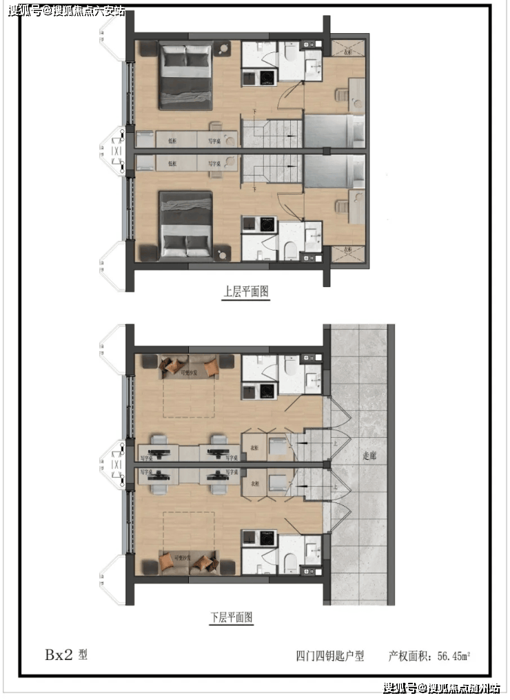 四钥匙户型:建面56-57㎡,四门独立入户,可改造为6房,满足多场景投资需求