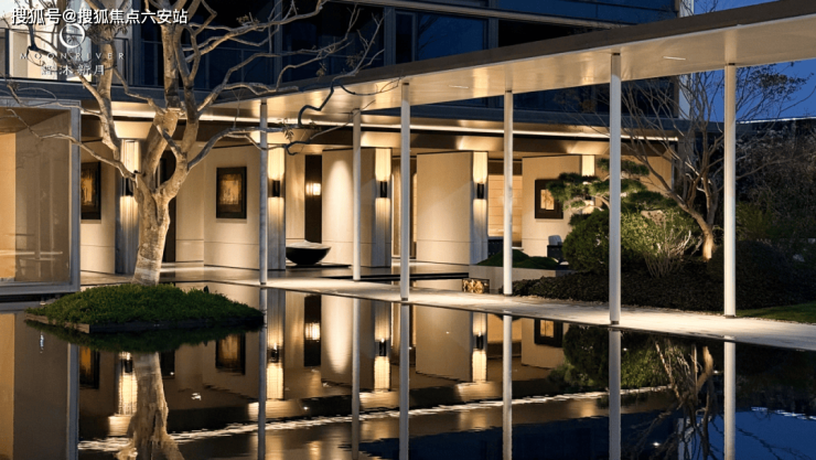 【尊贵门庭】沐新月门头庄重气派。入门之际,对称悬浮树阵映入眼帘,美感与秩序交织,引人入胜。独特的“水上树阵”下,如镜水院清澈见底,树影如梦似幻,营造出空中漂浮的奇妙视觉。