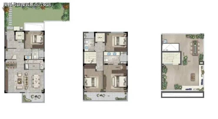 上叠依旧拥有专属院子,从独立北向入户门内进入,首先引入眼便是私家花园。三、四层均有景观大阳台,此外还自带一个屋顶露台,有天有地的墅院生活,在此徐徐开展。