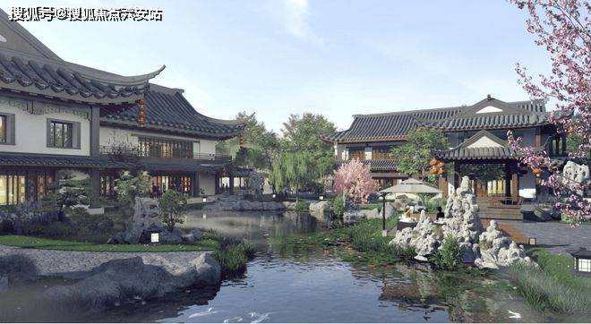 园林景观:以“一轴一带五进十巷”为骨架,中央景观轴串联假山跌水、四景亭等园林节点,复刻《千里江山图》意境,打造“四水归堂”的财禄格局。