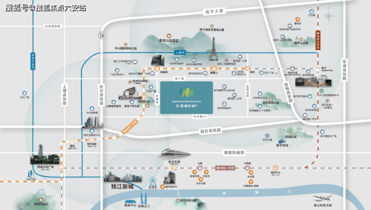 更关键的是,项目临近地铁3号线华鹤街站口,这条贯穿杭州东西的「黄金线路」,串联起丁桥、华丰、新天地、火车东站等核心节点,业主下楼步行即可到达地铁站,30分钟直抵钱江新城,通勤效率与生活便利度双重拉满。
