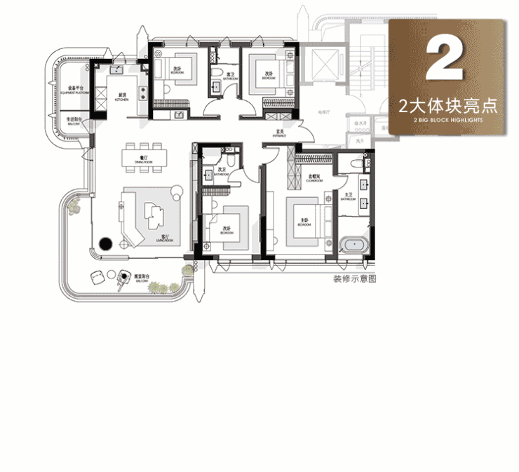 四季美景像一幅画卷一样摊开在你眼前,这是建面约200+大平层也少有的配置,真正户型跃级。