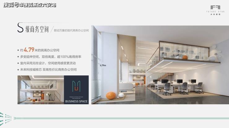 未来星宸项目总建筑面积14.3万平方米,整体拥有商务办公6.1万方,邻里商业2.7万方,精品酒店1万方。围绕互联网、人工智能、大数据、电商、数智文化、科学研究等产业形成科研发展生态创新区。