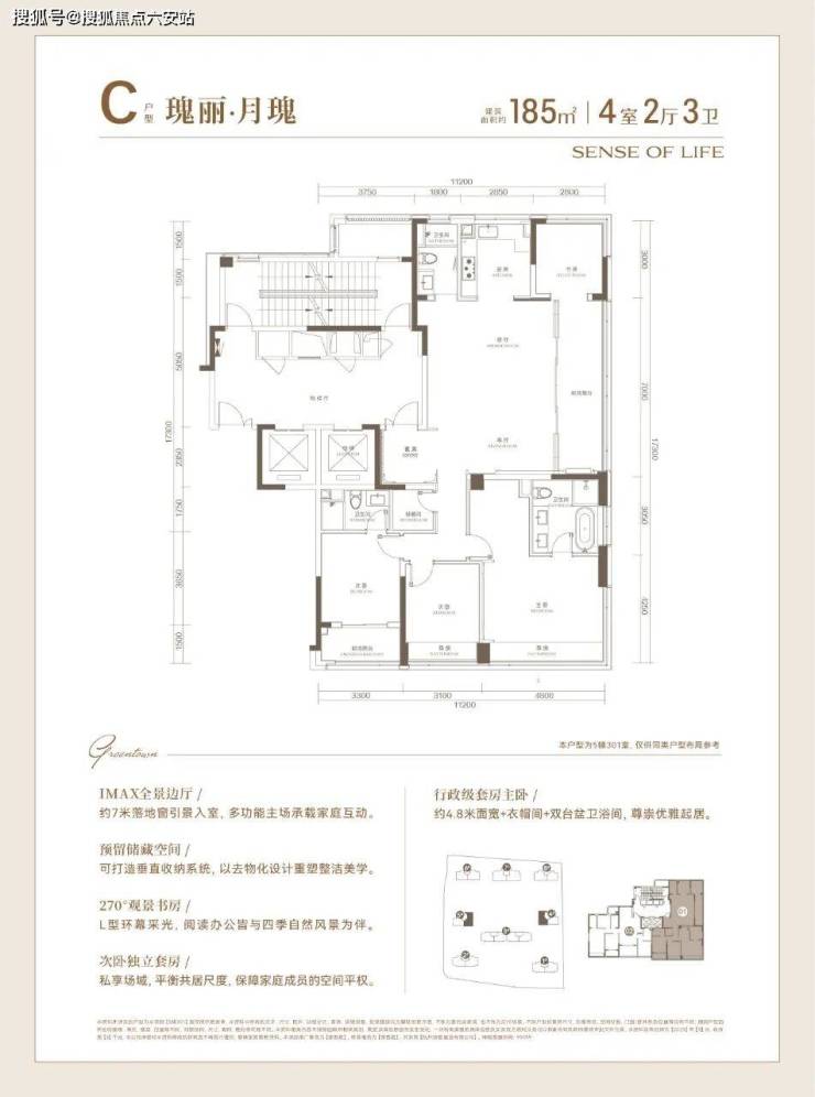 149㎡和185㎡,本次加推的为尚未开放样板间的170㎡户型: