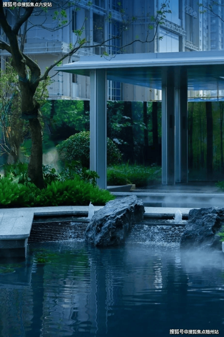 1. 景观体系: 以“一廊三心九园”为核心理念,风雨连廊串联楼栋,中央草坪衔接茶亭、水景花园等功能模块,九大口袋花园满足儿童娱乐、老人休憩与青年社交需求。
