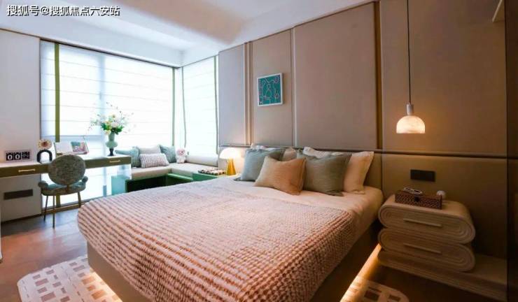 主卧套房格局尽显尊崇,为业主打造了一个静谧奢享的私属天地。观景飘窗让业主在闲暇时光可以坐在窗前,品一杯香茗,读一本好书,欣赏窗外的美景;步入式衣帽间(预留)为业主提供了充足的衣物收纳空间,让衣物整齐有序,彰显品质生活;独立卫浴系统则保证了业主的私密性和舒适性,让每一次沐浴都成为一场身心的享受。