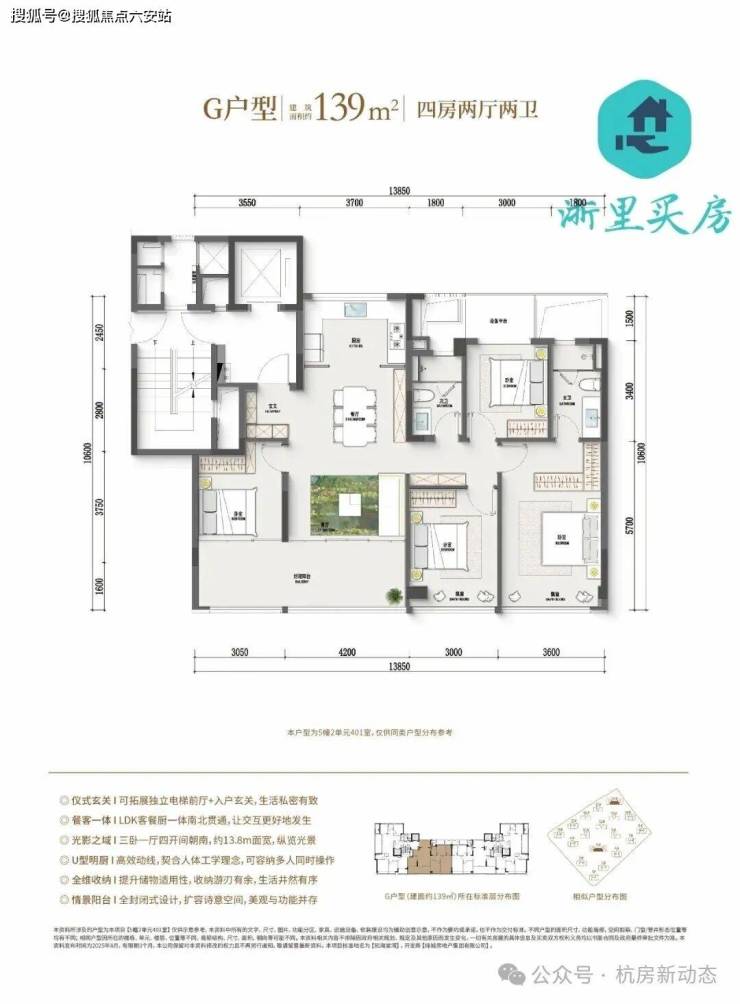 亮点:边厅设计+双主卧套房,北向X空间可变,三代同堂无压力。