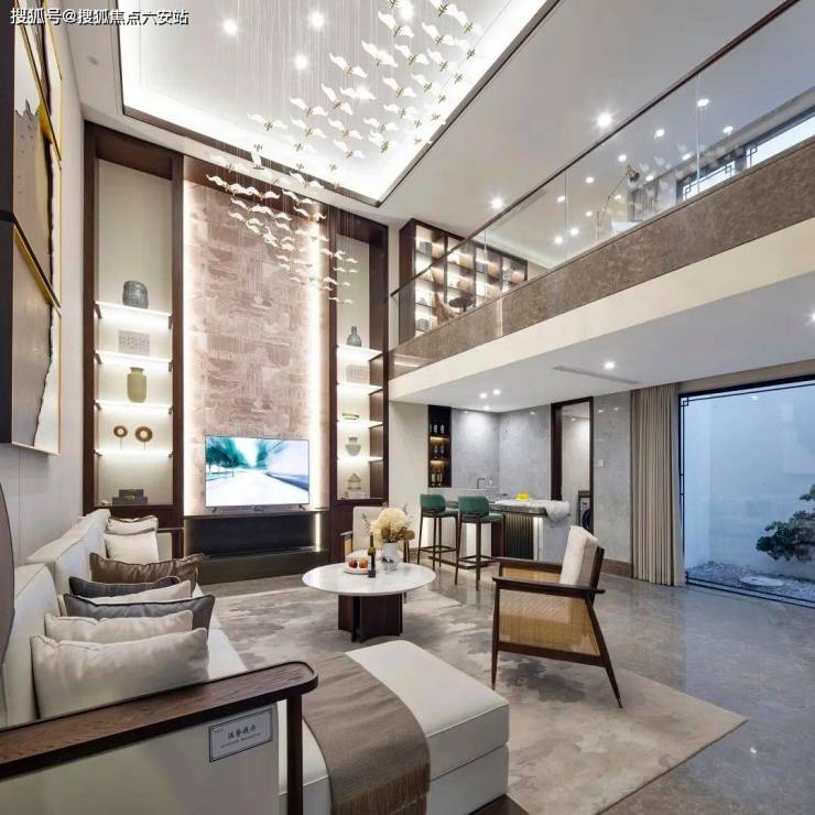 层高约5.6米的地下挑空灵动场域,无论是作为会客厅、休闲室、观影区都绰绰有余。一楼层高约4.25米,客餐厅面宽约10.7米,一楼老人房开间约3.6米,空间奢阔有度。其中客厅和卧室均与南向主庭院连通,为生活平添几分诗意闲情。