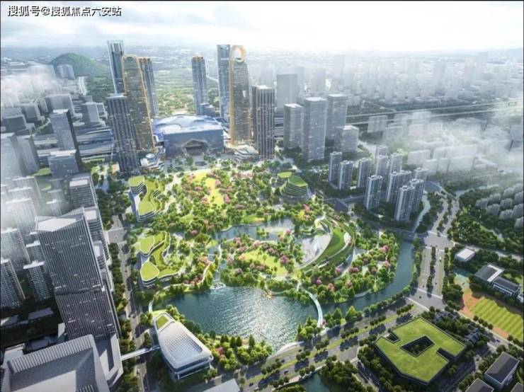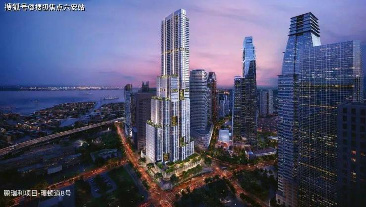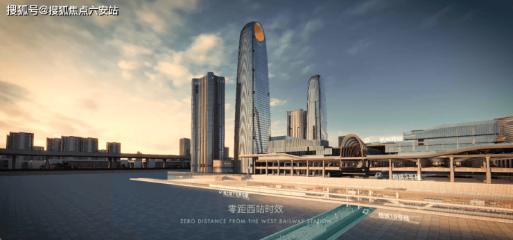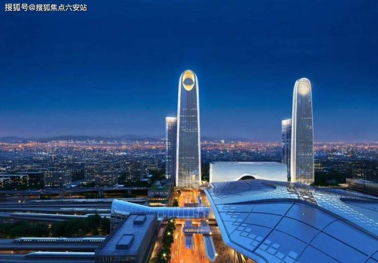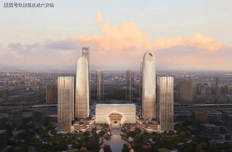 而围绕其两侧的四幢塔楼更是直插云霄:A塔楼设计高度320米,已建至53层:B塔楼高度300米,已建至58层:C、D双塔楼高度均达213米,四幢塔楼齐齐突破200米大关。