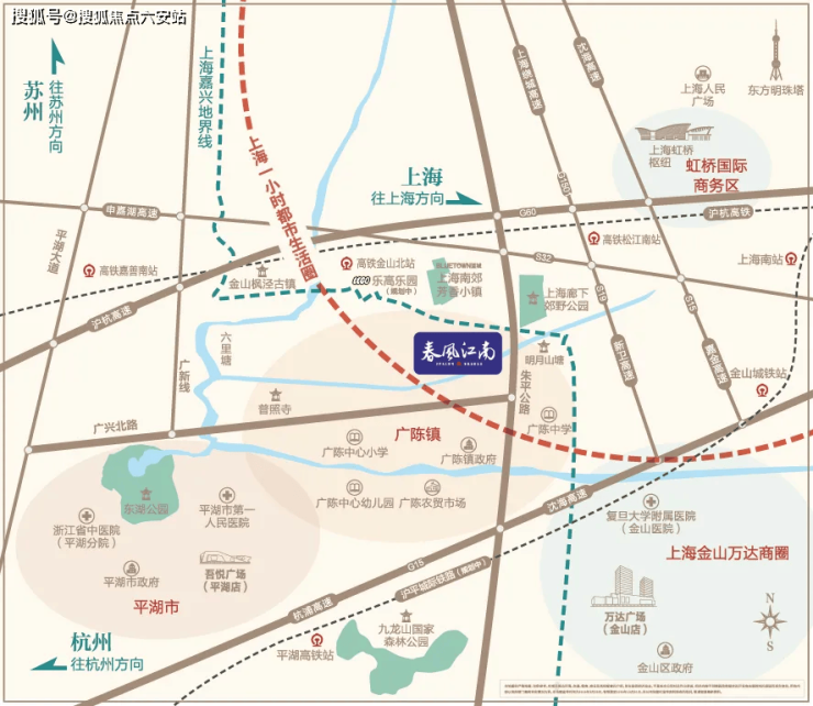 位于虹桥南向拓展带,与上海廊下郊野公园仅一河之隔,距莲廊专线约3公里,咫尺上海,畅享平沪同城生活圈。