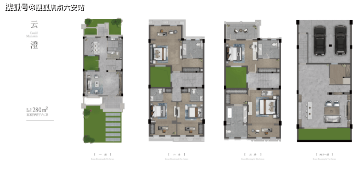 绿城雲溪里总用地面积约6.2万㎡,总建筑面积约9.8万㎡,容积率仅1.02,绿地率高达30.2%,营造出一个低密、舒适的居住空间。项目由25幢四联排和27幢双联排组成,共154户,每户面积段为255-352㎡,部分庭院面积超450㎡,最大拓展面积约50㎡,为业主提供了宽敞的居住空间和私密的庭院生活。