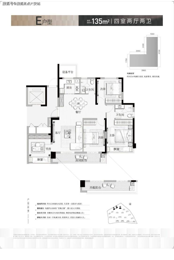 · 135㎡四房两卫:双主卧套房+独立家政间,LDK一体化社交空间;