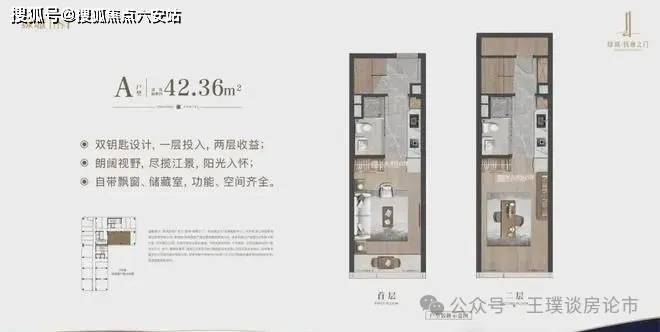 建筑面积约34-59㎡双钥匙公馆,买一层享两层,双倍空间,灵活多变,满足居住、办公、投资等多重需求,是杭州难寻的60万以下小户资产,且为实景准现房,小投入回报快,明星产品价值显著。