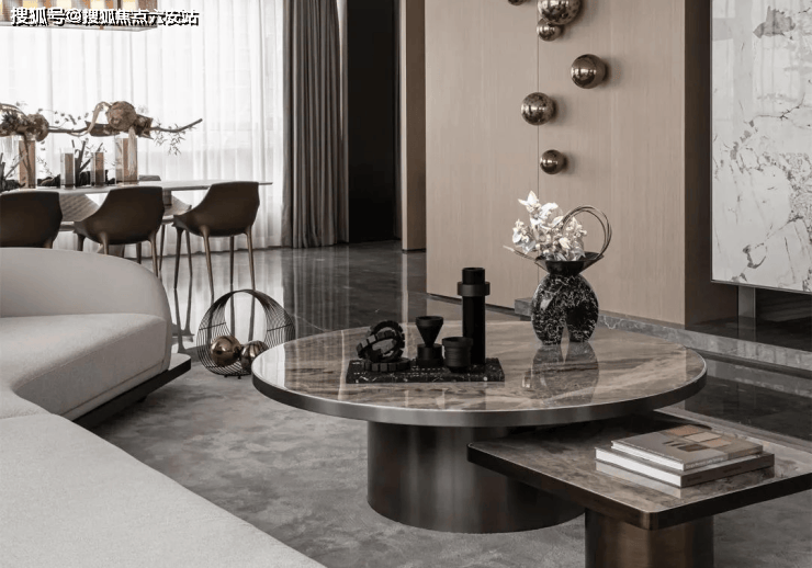 Classical340样板间以“社交优先”重构空间逻辑。传统300方户型常被切割为5-6个房间,而中天纪将约100方留给公共区域,形成22米南向开间的“社交长廊”。这种设计源于对塔尖人群生活方式的洞察:商务接待需要仪式感,家庭聚会渴望亲密性,独处时光则追求静谧感。