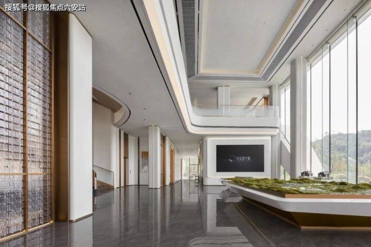 售楼处重现仙女湖山水的影子,在行云流水中将时尚与自然完美结合,拥有“离城市不远、和自然很近”的生活意境。室内延续外建筑的流线艺术,及银泰品牌理念,演绎一场别开生面的前沿时尚大秀!