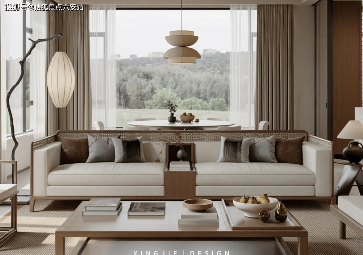 「起居」空间以素色沙发、编织矮几与宋式圈椅元素相融,传统形制化为现代语言 。墙上的宋画复刻,仿佛将《清明上河图》的烟火气带入家中;高挑空设计,再现宋式建筑的轩敞疏朗。
