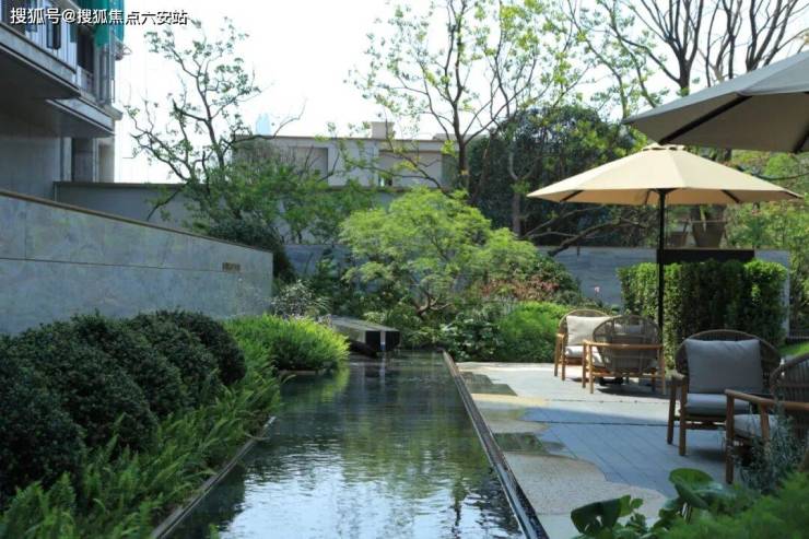 以四季酒店的度假体验为灵感,明湖逸庐将“水-洲-船-月”的意象融入园林——水景随地形起伏,洲屿点缀其间,船型廊架与月洞门相映成趣,四季有花、步步有景,让业主在社区内就能感受“度假式”的松弛。