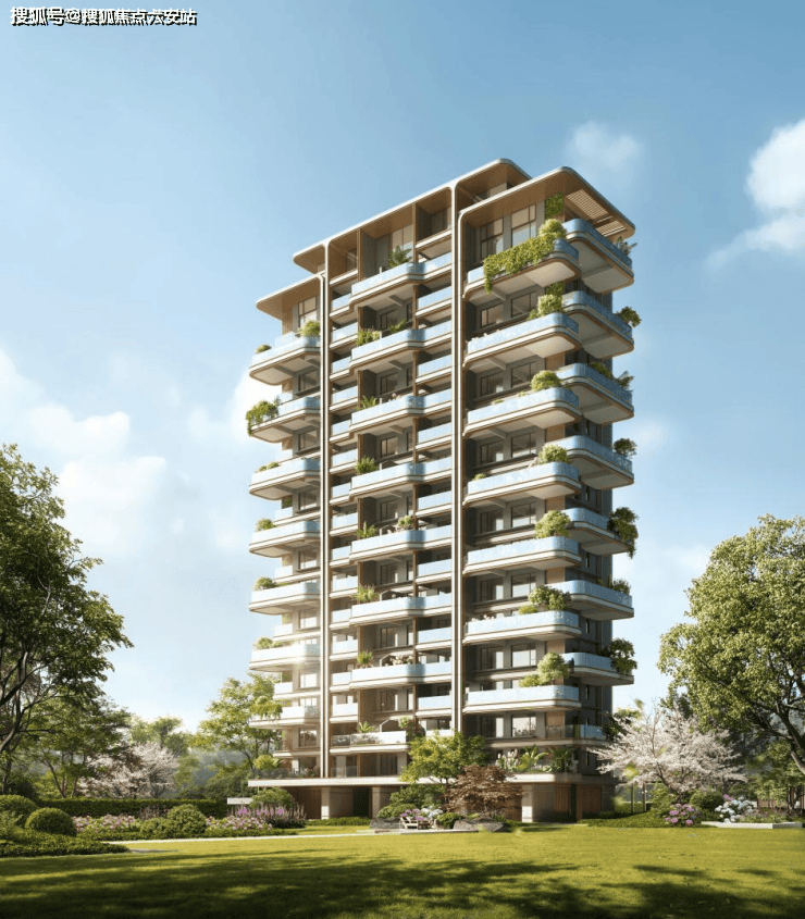 第四代住宅设计:每户配备空中花园,采用独门独院布局,主仆动线分离,融合别墅私密性与大平层社交空间。
