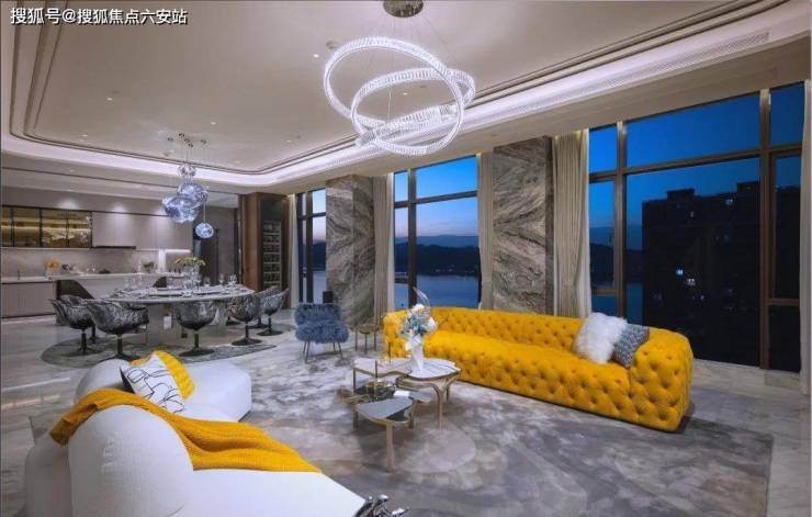 相较于周边区域的江景豪宅,如水晶澜轩的378㎡最大户型,其最大厅面积仅为40㎡,蓝城英冠·滨悦城无疑更胜一筹。其约4.1米的层高设计,不仅在垂直空间上进行了充分拉伸,还与横向铺展的江岸线形成了绝美的呼应,充分展现了“开窗放入大江来”的恢弘气势。