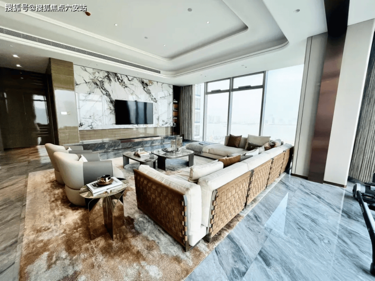 一线江景与地标视野:项目直面钱塘江,每户享有270°超广角环幕视野,北瞰奥体“大莲花”、杭州之门等地标,南接钱江世纪公园,形成“江景+城景”的双重景观体系。480㎡跃层采用双挑空设计,层高6.8米,540㎡端户配置270°环幕玻璃,实现“窗框即画框”的视觉效果。