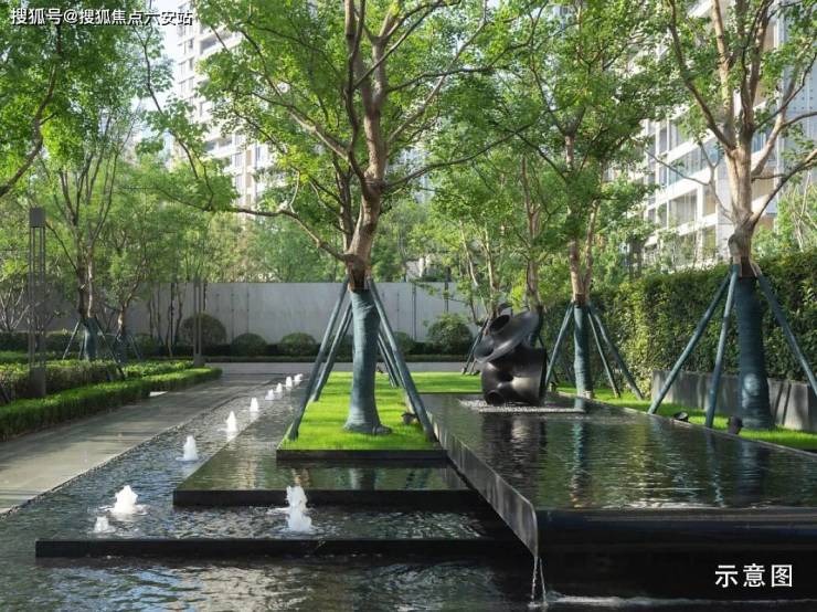 菲郦雅院的园区景观设计,同样体现了法式建筑的经典美学。经典的法式中轴对称的十字景观轴,串联起四大主题空间:“寻溪如林、穿林听风、林野赏境、觅林童趣、沐林归境”的五重景观,穿插儿童游乐场、全龄运动场、轻氧休闲场、城市会客厅等活动空间,动静皆宜。