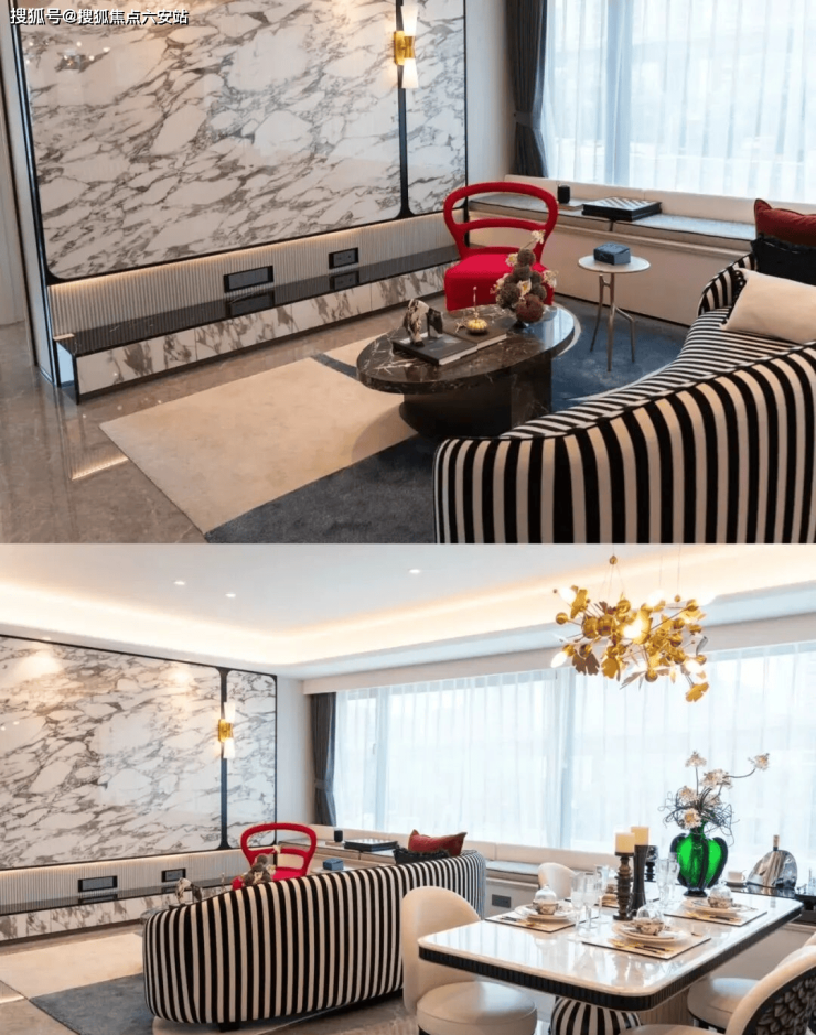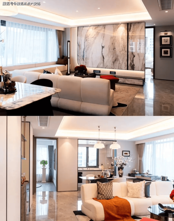 但凡看过棠悦芳华轩的朋友,会注意到项目的入户单元门、电梯公区等都藏着很多奢雅的细节,诸如各类岩板、石材、铝板等高浓度运用,瞬间提升了空间的档次。