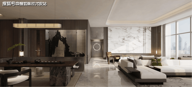 以扎哈·哈迪德“凝固的波浪”为灵感,游艇流线立面呼应南门江蜿蜒水韵。大面积玻璃与铝板交织,构筑波光粼粼的建筑肌理。4幢大平层围合布局,约5000方微度假园林,打造户均450方的私享景观。从晨曦到暮色,光影在建筑上流转,仿佛一首无声的诗。