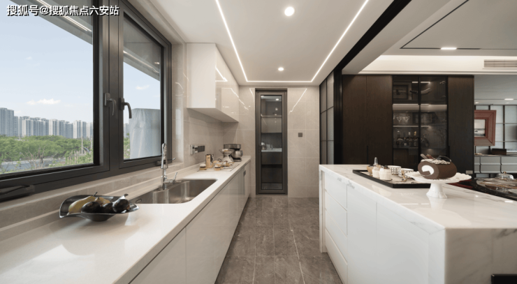项目内部采用了板块罕有的约3.05米层高设计,厨房更是配置了含洗碗机的厨房三件套,还有全屋墙布、中央空调、地暖、主卧智能马桶等设计,如此“改善”谁能不爱。