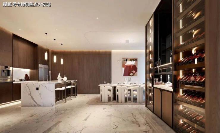 引入无边界理念,打造客、餐、西厨一体化的约200方超级会客厅,以超大岛台重定家庭社交中心,以通顶酒柜、开放式书房&茶室,丰富私人酒会、家庭派对等生活。