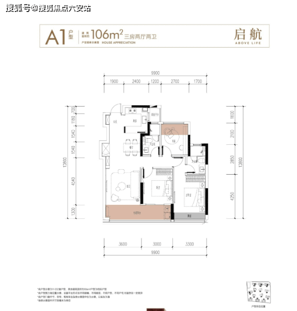 建面约106方户型: