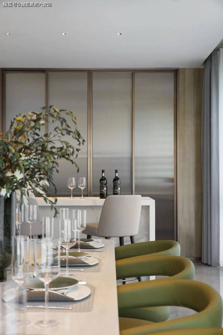️490平户型创新性地将中西厨分离,中厨配置嘉格纳200系列嵌入式冰箱,西厨区配备2.8米长的意大利Arclinea中岛吧台,配合可容纳12人的Bonaldo旋转餐桌,满足米其林家宴的社交需求。
