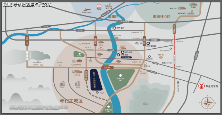 特别值得一提的是北侧的宝化路,它直连主城各主干道,仅需几分钟车程即可到达城区中心。随着未来宝化路东延工程的落地,项目与机场南延线的连接将更加紧密。届时,从项目出发,约10来分钟可到达高速入口、地铁金海路站及奉化动车站;约20多分钟直达宁波栎社机场;约30来分钟便能融入宁波市区。这种立体化的交通网络,彻底打破了区域的界限,让双城生活变得随心所欲。